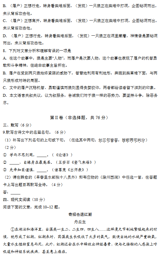 . 2019成都中考语文模拟试卷(3)_成都学而思1对1
