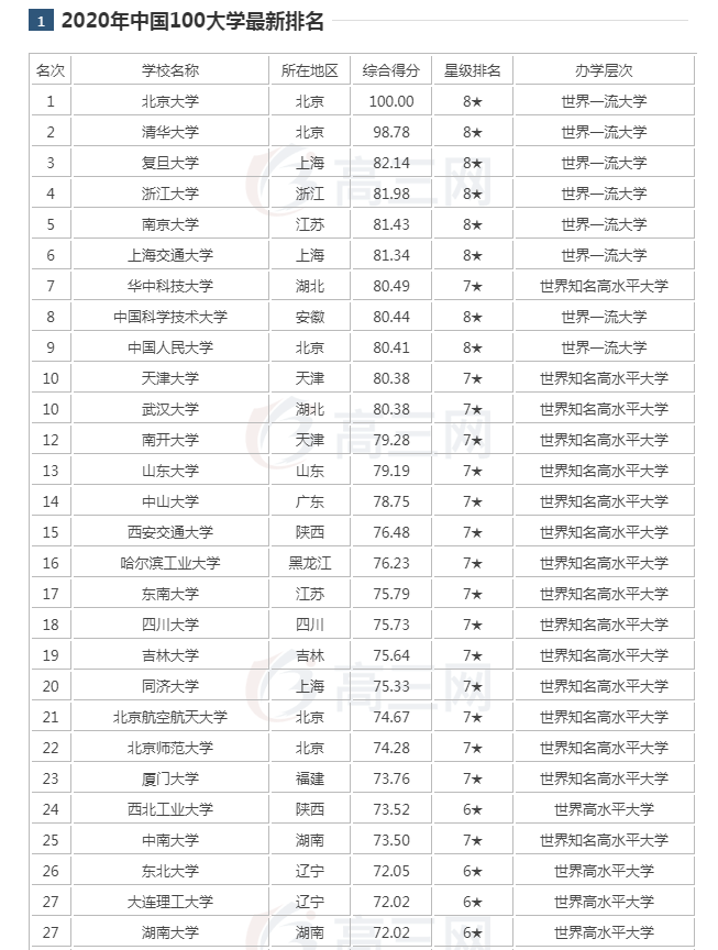 2020全国大学排名前一百强。智力决不会在已经认识的真理上停止不前,而始终会不断前进,走向尚未被认识的真理。——布鲁诺。这里有成都学而思一对一小编为大家收集整理了2020全国大学排名前一百强,希望对大家有帮助。