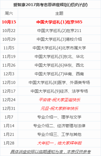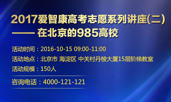 好未来(原学而思)爱智康高考志愿填报系列讲座再次启航,为您的2017年志愿填报保驾护航。