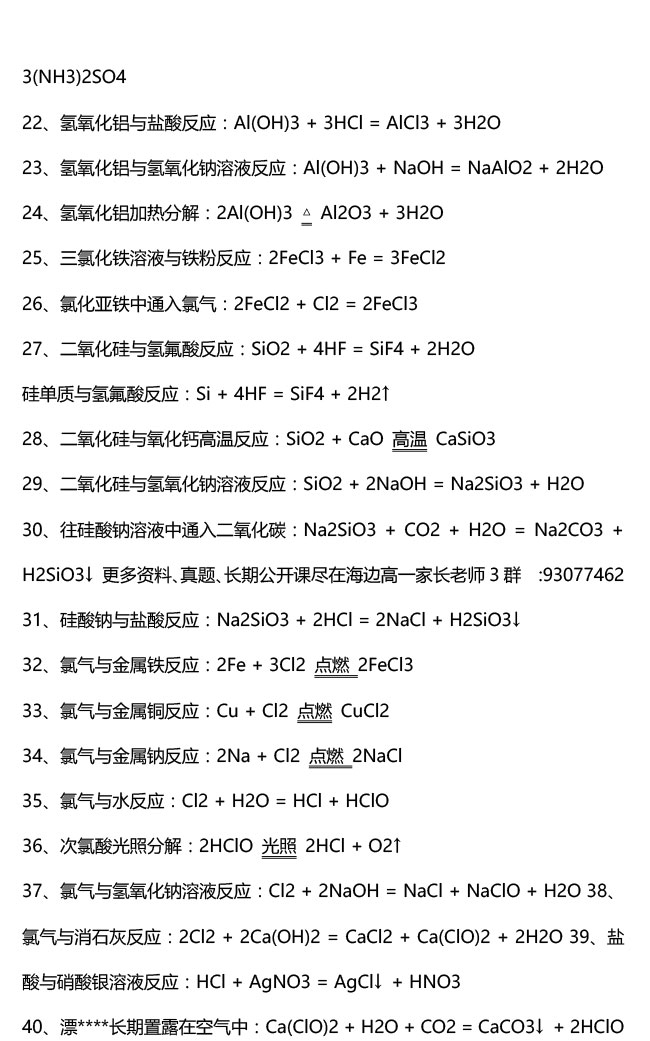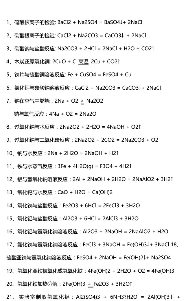 高一的所有化学反应方程式大全(可下载)!化学反应方程式少有是做化学试题的基础,高一诊断需要掌握的所有化学反应方程式,下面资料供大家参考提高,希望对大家有所帮助!