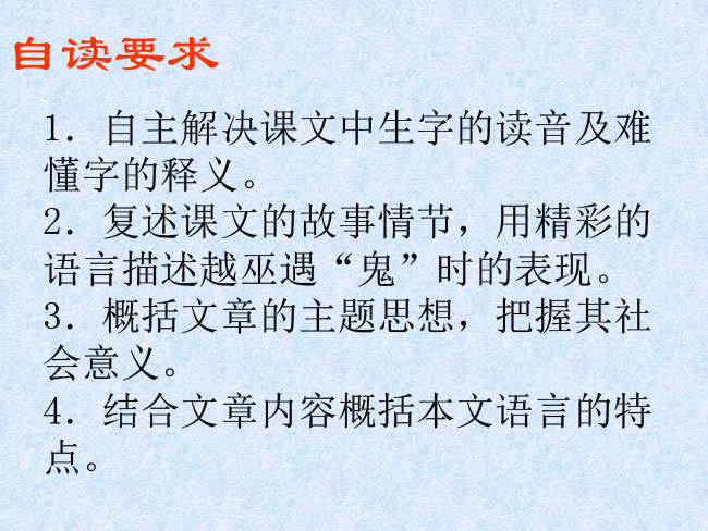 《越巫(方孝孺)》课件2!《越巫》是方孝孺早年游历吴(今江苏南部)越(今浙江北部)时,依据客人的谈话而写成的一篇类似寓言的短文。它说的是“好诞者死于诞”,此人至死都没能觉悟到自己死的真正原因。下面小编为大家分享《越巫(方孝孺)》课件2!希望对大家有所帮助!