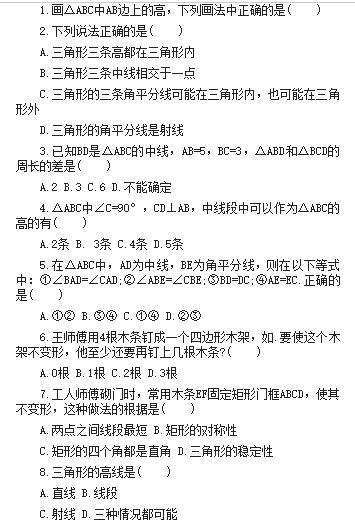 三角形的稳定性练题目