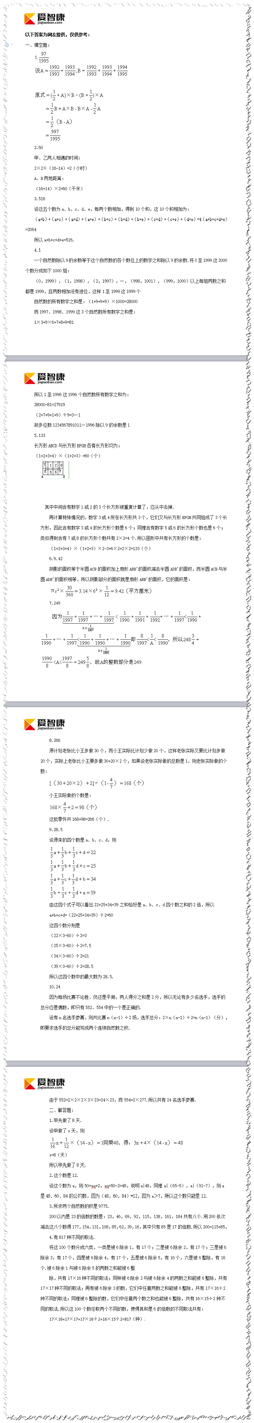 爱智康小学教育频道分享的小学升初中数学试题及答案(二十七)到这里就结束啦,有关小学数学辅导的课程,请直接拨打免费咨询电话: