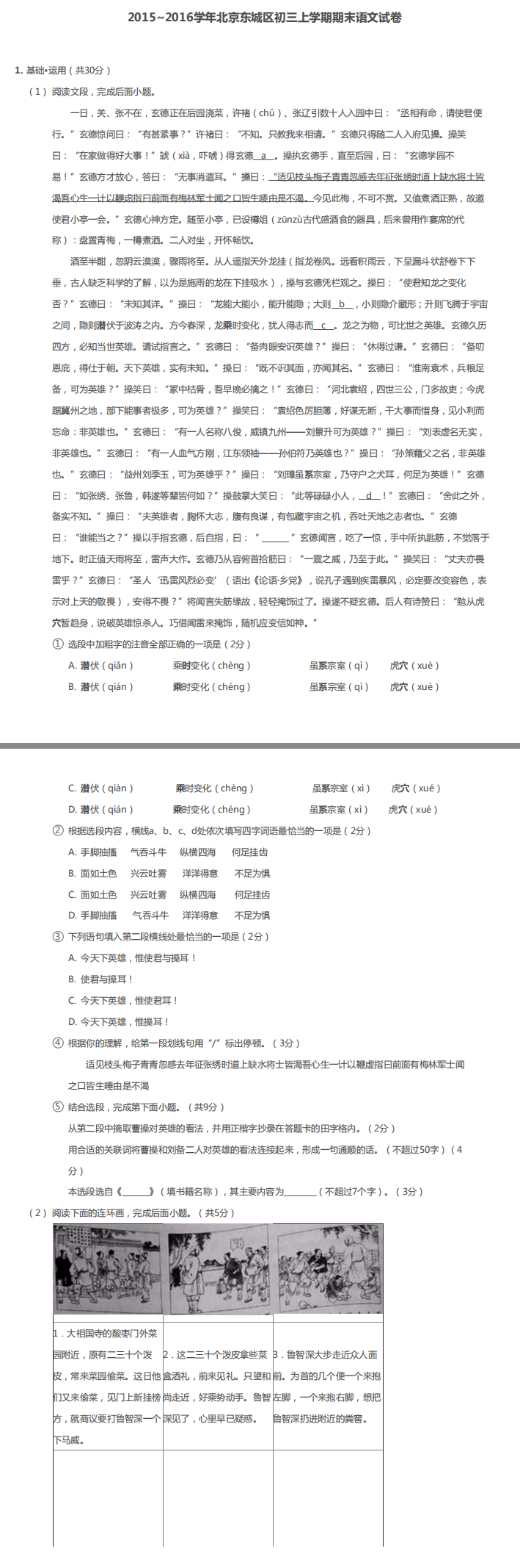 点击下载试题:2016年东城初三上期末语文试题 | ||