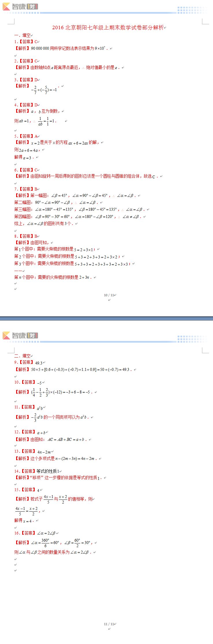 点击下载试题:2016年朝阳初一上期末数学试题及答案 | ||