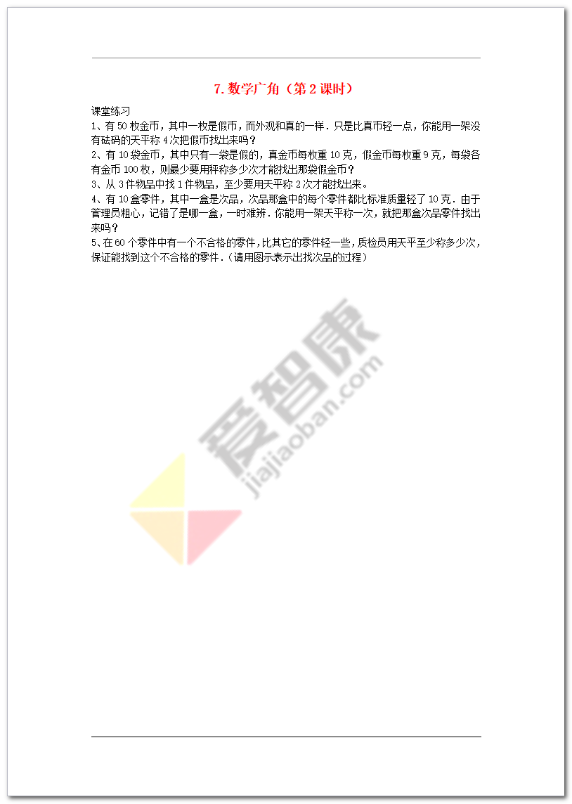爱智康小学教育频道分享的2017-2018学年五年级数学同步训练:7.1《数学广角》(第2课时)【可下载】到这里就结束啦,更多有关小学数学的其他问题,请直接拨打免费咨询电话: