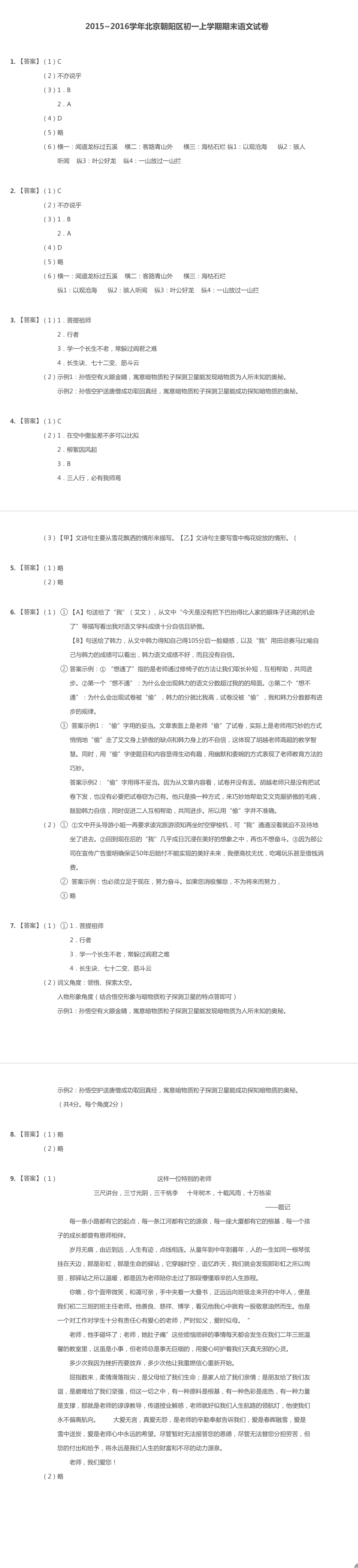 点击下载试题:2016年朝阳初一上期末语文答案 | ||