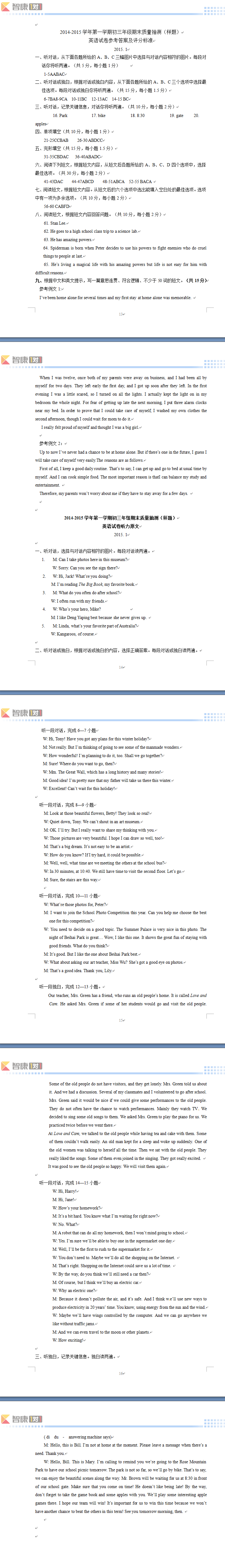 爱智康初中教育频道分享的2015年西城初三上期末英语试题及答案到这里就结束啦,可以尝试参加一些英文演讲比赛或者英语舞台剧表演。一方面锻炼自己的语言表达能力、培养语感;另一方面锻炼自己的组织能力和人际交往能力。更多有关初中辅导的课程,请直接拨打免费咨询电话: