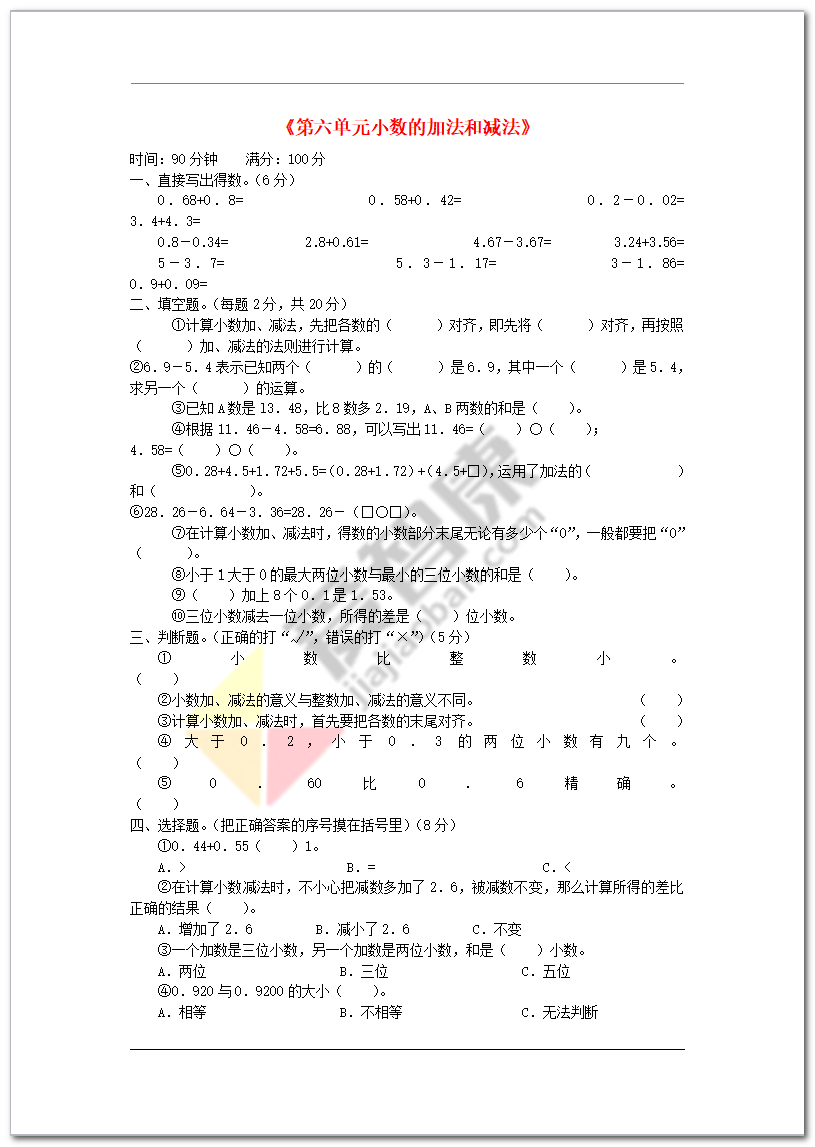 2017-2018学年四年级数学同步训练:6.2《小数的加法和减法》【可下载】我们在之前学习了整数的加法和减法,那么小数的应该怎么算呢?下面是爱智康小编为您带来的2017-2018学年四年级数学同步训练:6.2《小数的加法和减法》【可下载】!希望对你有所帮助