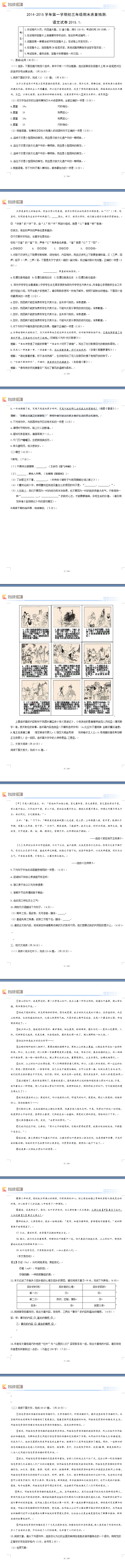 2015年昌平初三上期末语文试题及答案! 学习语文需要日常的积累,没有积累的语言是苍白的,没有积累的学习是徒劳的。有了厚实的积累才能激活思维,能触类旁通。下面为大家分享2015年昌平初三上期末语文试题及答案!希望能够帮到大家!
