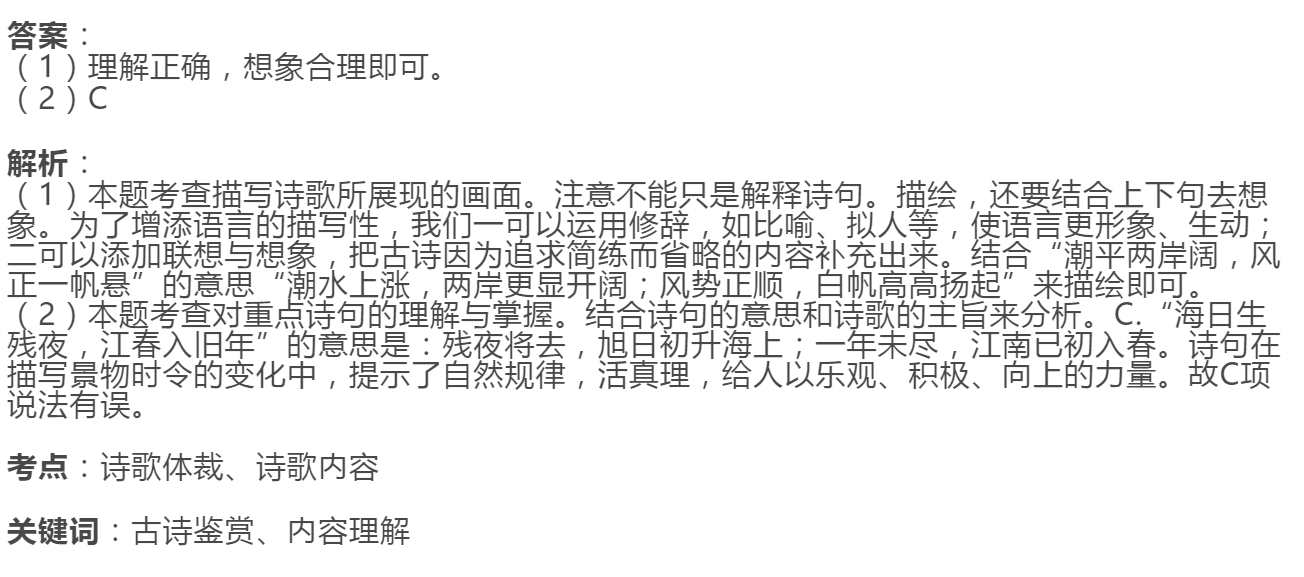 汇编 | 结合2018年初三一模诗歌鉴赏真题,看诊断说明的变化