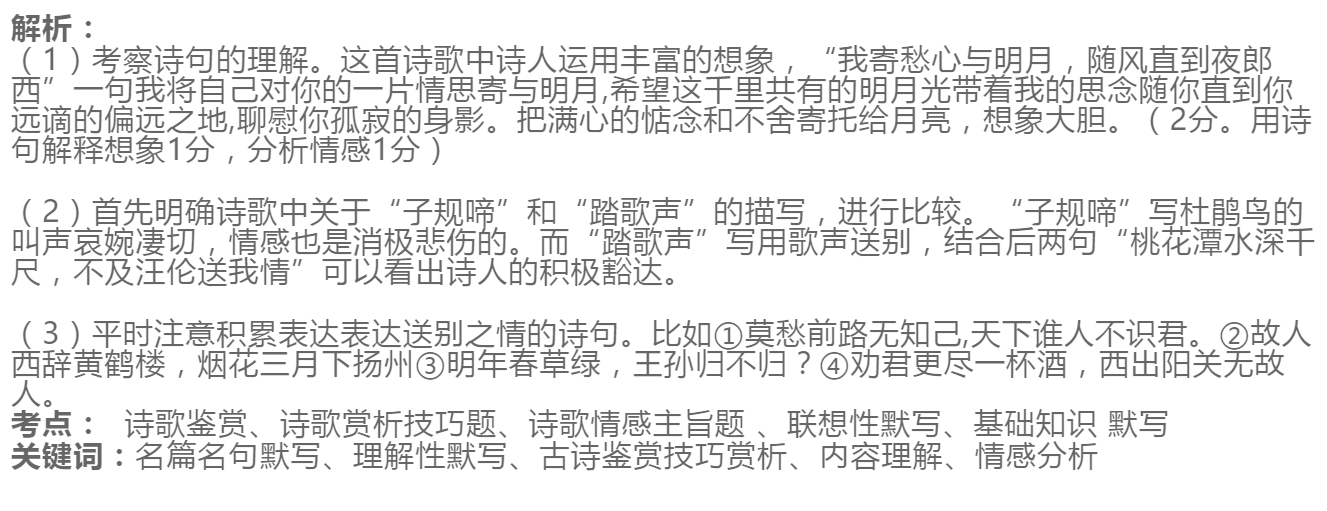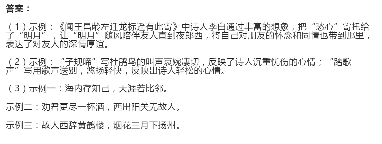 (1)《闻王昌龄左迁龙标遥有此寄》一诗运用想象遥寄深情,请结合诗句加以说明。