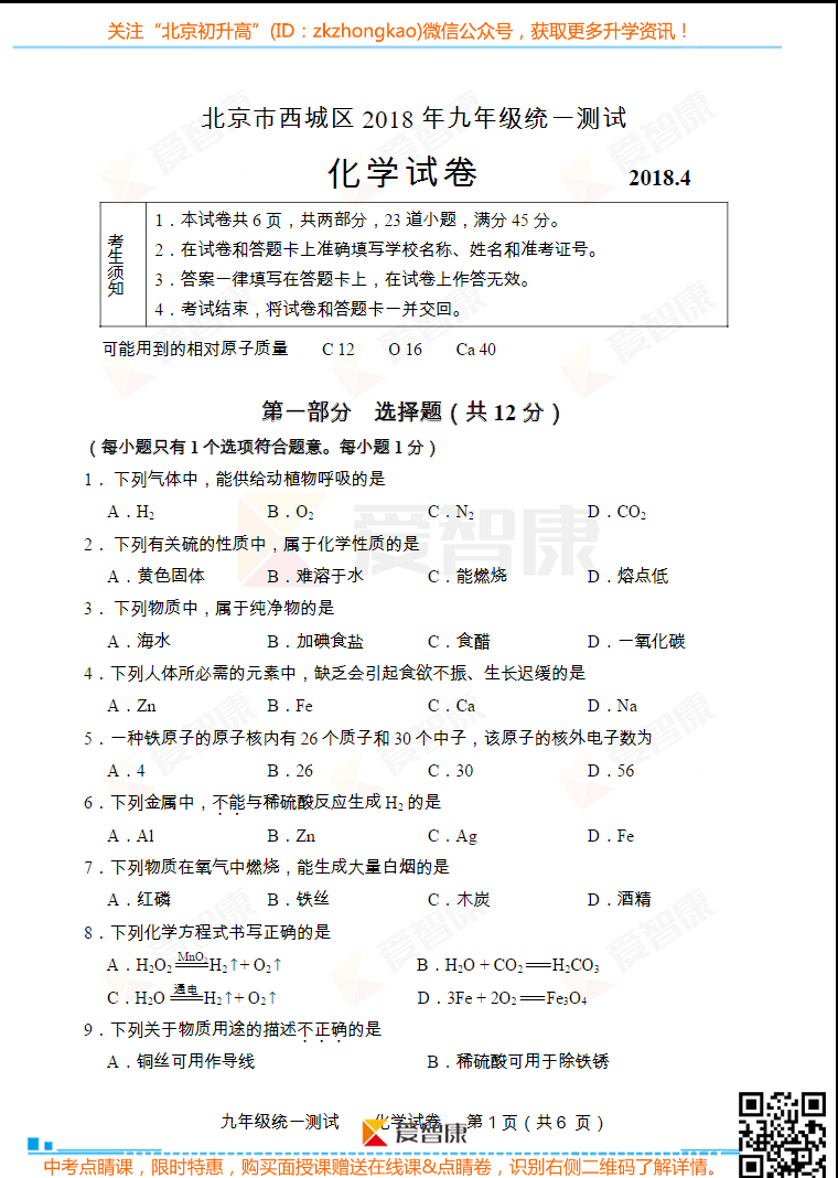 这一期的北京化学一模试题及答案小编就介绍到这里,同学们一模是中考的试金石,大家一定要认真对待哦。想了解相关课程的同学,请拨打学而思爱智康免费咨询电话: