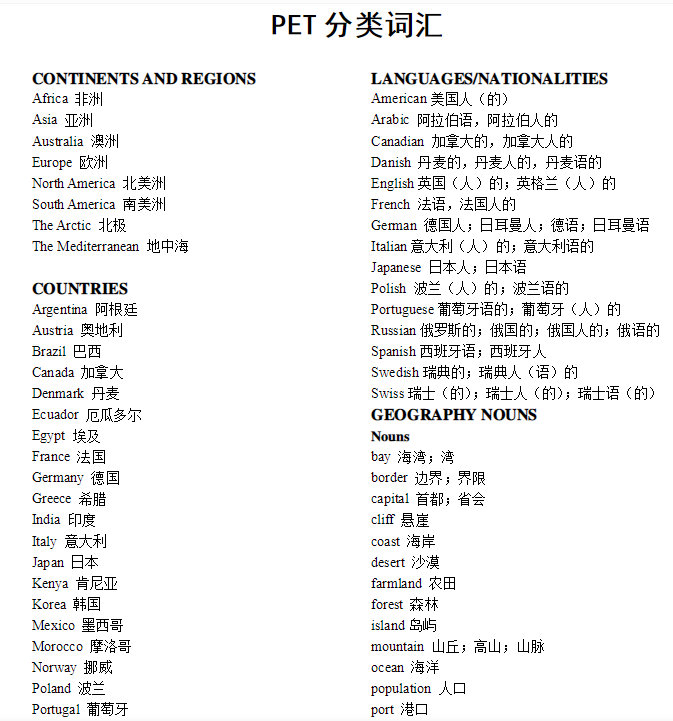北京剑桥英语pet词汇表!同学们无论是否为了剑桥英语PET的证书,同学们想要学好英语这门功课,都要掌握好单词的,因此同学们要好好的做单词积累哦,同学们加油。下面,小编为大家带来北京剑桥英语pet词汇表!一起来看一看吧~