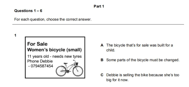KET考试阅读第一部分题型和PET阅读部分考试题型一致,都是标识选择题,这也是KET考试改革的趋势。