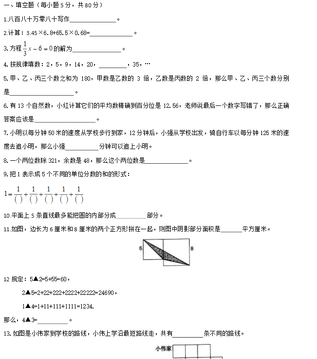 北京新初一分班考数学试卷!同学们的数学基础怎么样呢,分班考的难度不相同,每个学校都是初一老师自己组织命题的,同学们可以看看历年的考题,也可以做做,感觉一下自己的水平,以及需要加强的地方。下面,小编为大家带来北京新初一分班考数学试卷。