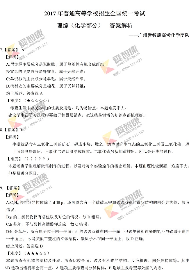 >>>查看2017年广东高考试题及答案(全国I卷)