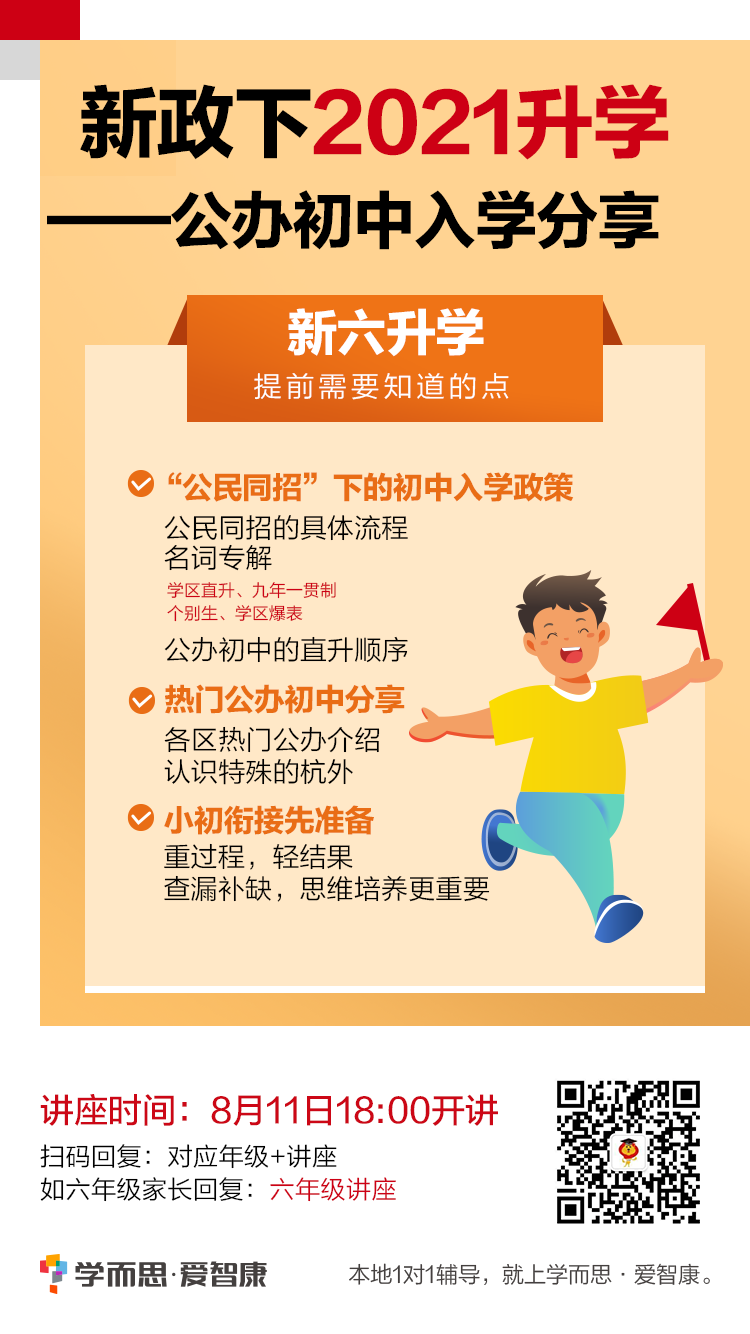以上是为大家整理的讲座预告:新政下2021升学——公办初中入学分享!同学们还有其他学习上的问题,可拨打学而思爱智康课程免费咨询热线电话:4000-121-121 . 有专业的老师为大家解答。