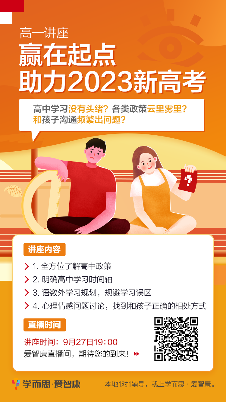 以上是为大家整理的讲座|赢在起点,助力2023新高考!同学们还有其他学习上的问题,可拨打学而思爱智康课程免费咨询热线电话:4000-121-121 . 有专业的老师为大家解答。