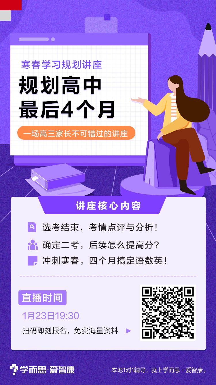 选考刚刚落下帷幕,虽然成绩尚未出来,但是答案、解析都已铺天盖地,学生通过自己回忆,对自己的分数应该已经有一个大概推断。这样学生与家长对于自己的选考是否二战、二战科目都算初步有数。在这种情况下,寒假与高三上学期的学习规划就非常重要了,包括科目安排、时间规划、重心设定等等。在这个时候进行这个讲座,既是热点也是必须。