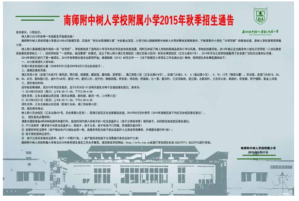 以上是2015年南京鼓楼区南师附中树人小学招生通告,希望这些内容能够帮助到大家。同学们如果有任何课程或其他疑问,欢迎拨打电话