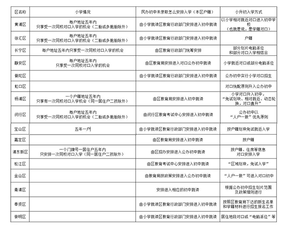 升学君今天把上海16区,五年一户,以及民办初中未录取怎样安排孩子入学,还有各区的小学升初中入学方式进行了整理统计,都在这张表上了。