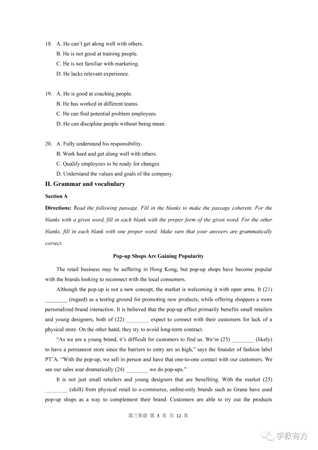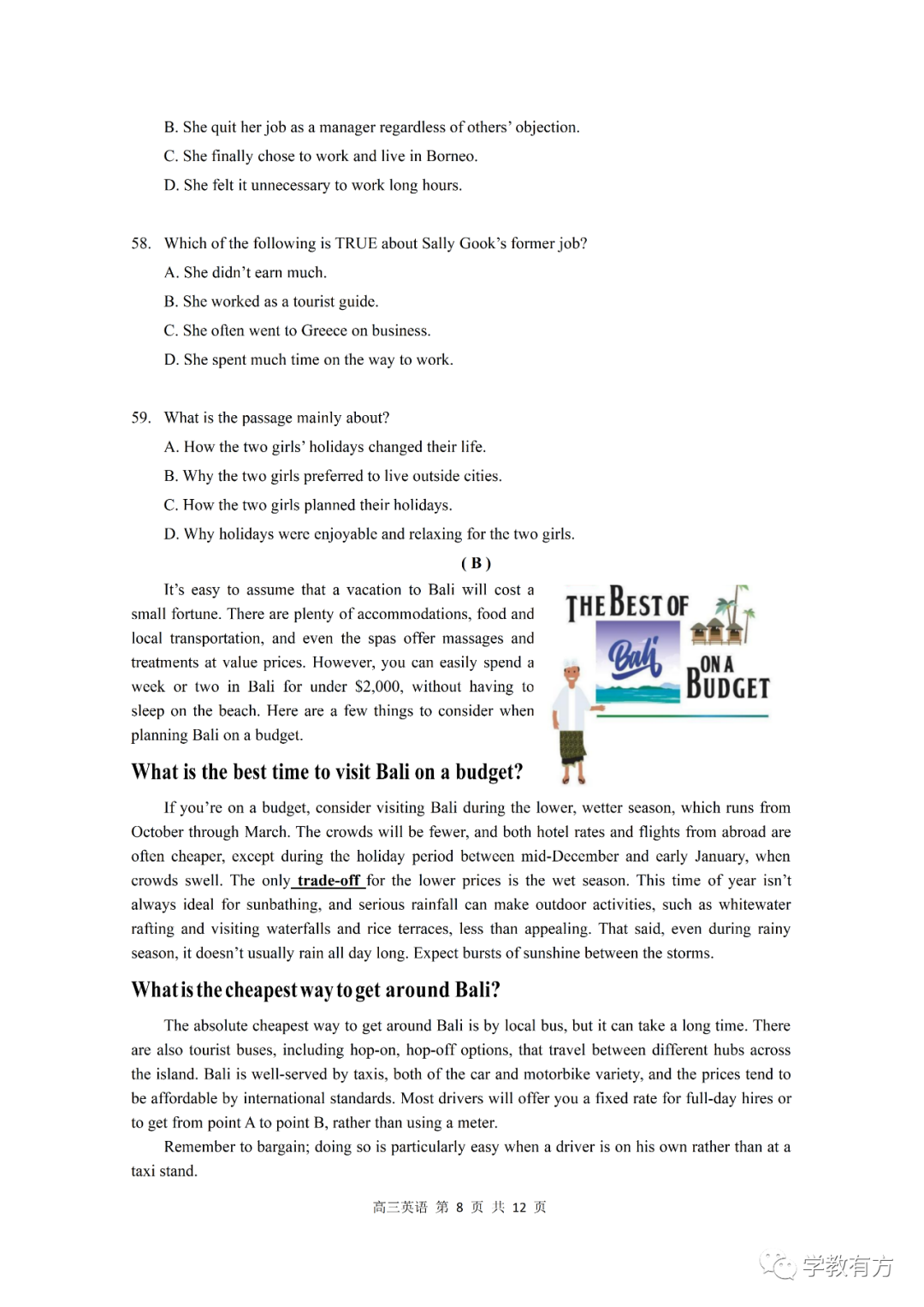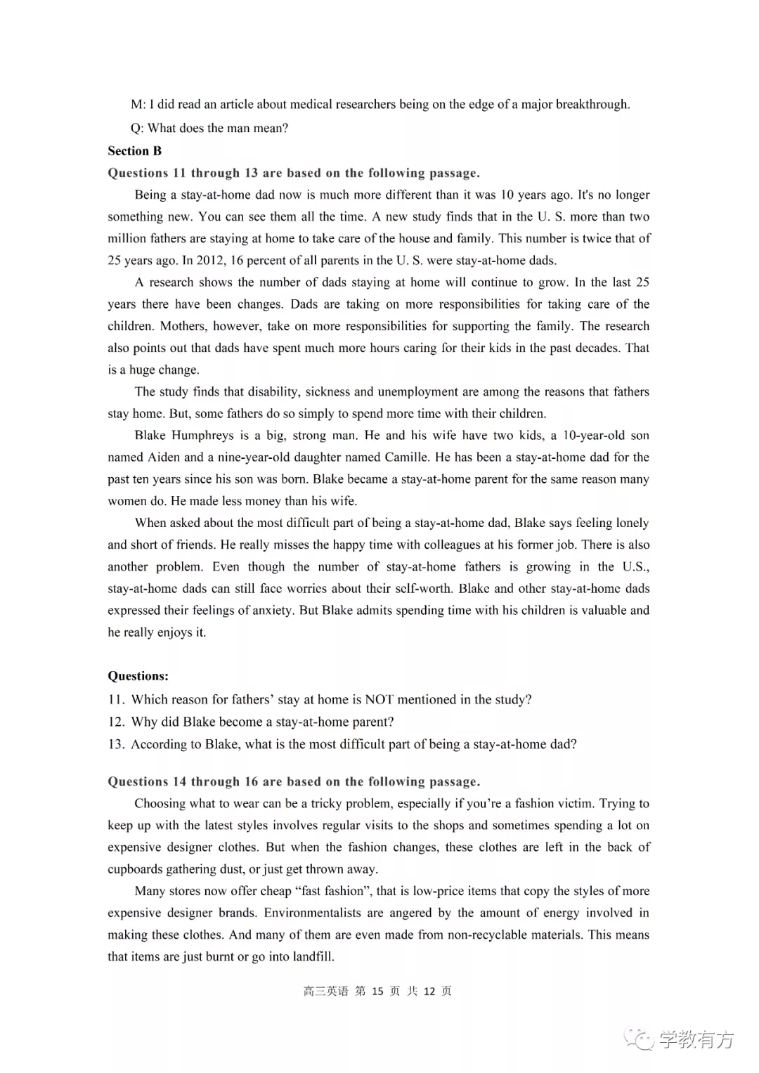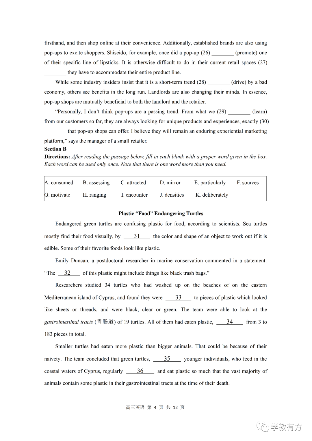 金山区高三二模英语试卷