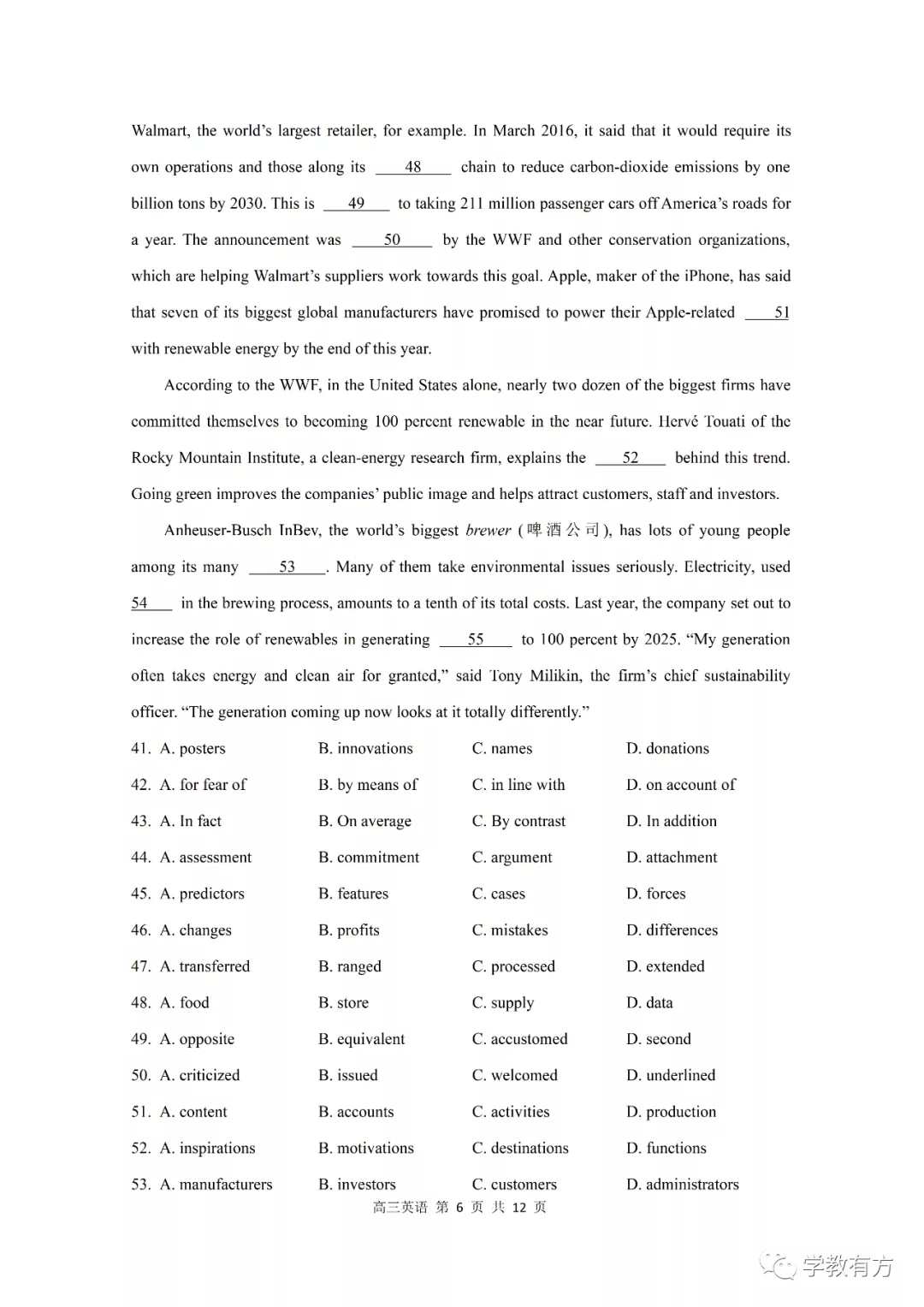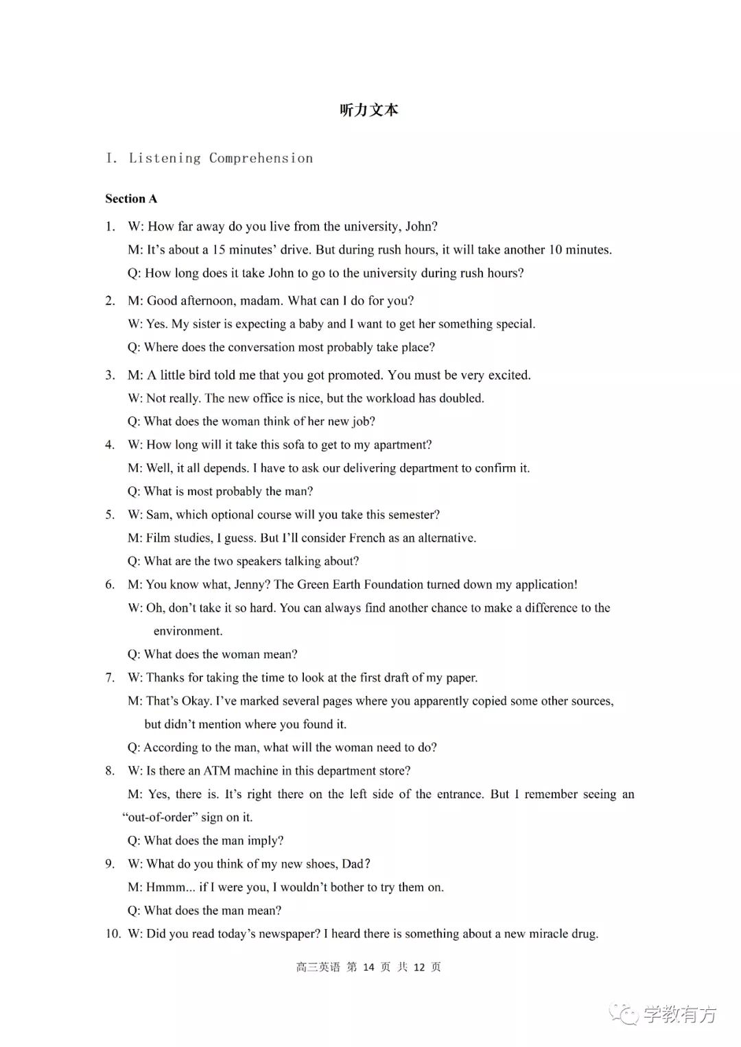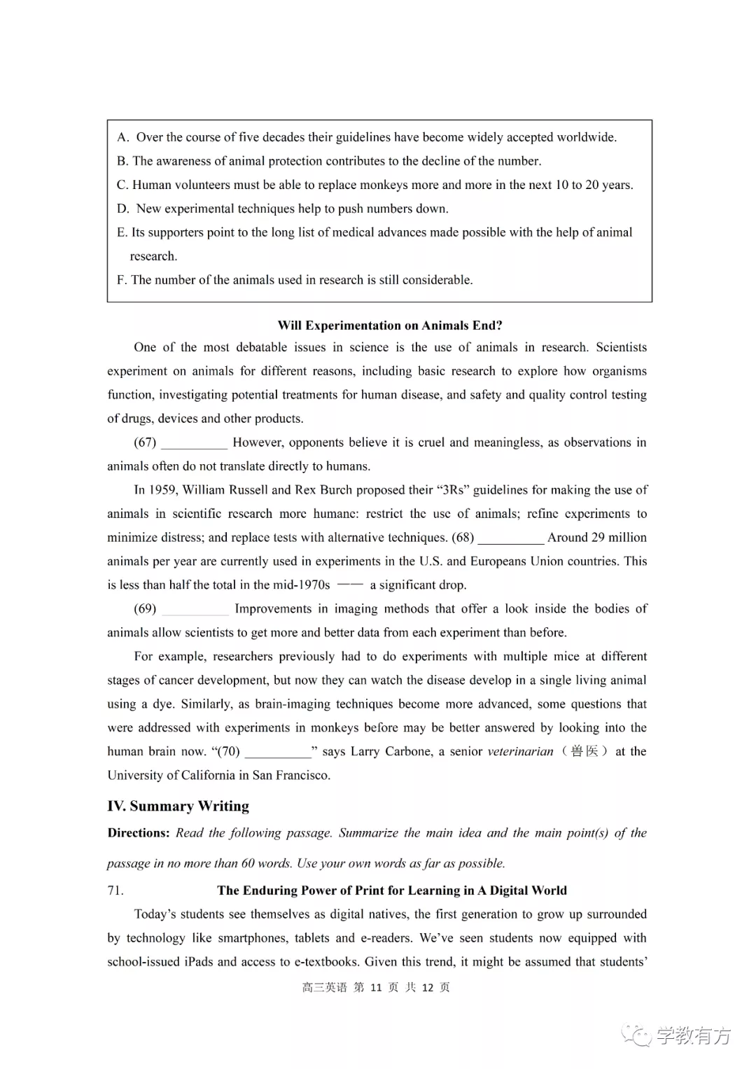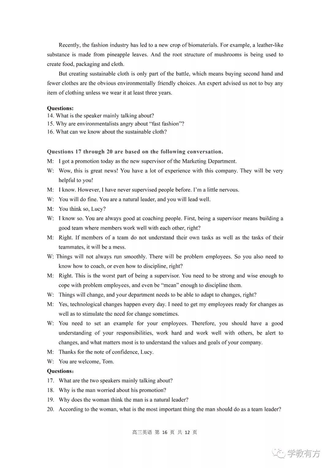 金山区高三二模英语试卷
