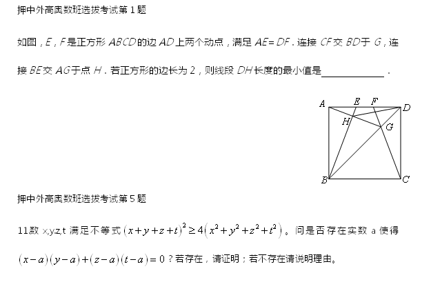 武汉外国语学校数学奥林匹克实验班课程信息(点击查看)