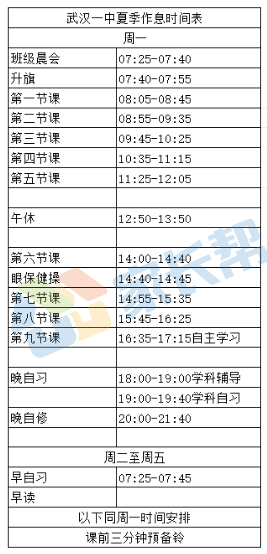 2021秋季就要开学了,武汉学而思1对1的老师们为大家收集整理了江汉区武汉市第一中学丨2021-2022学年度高中作息时间表的相关内容,以供大家复习参考。相关阅读:汇总丨2021-2022学年武汉部分高中住宿情况与作息安排