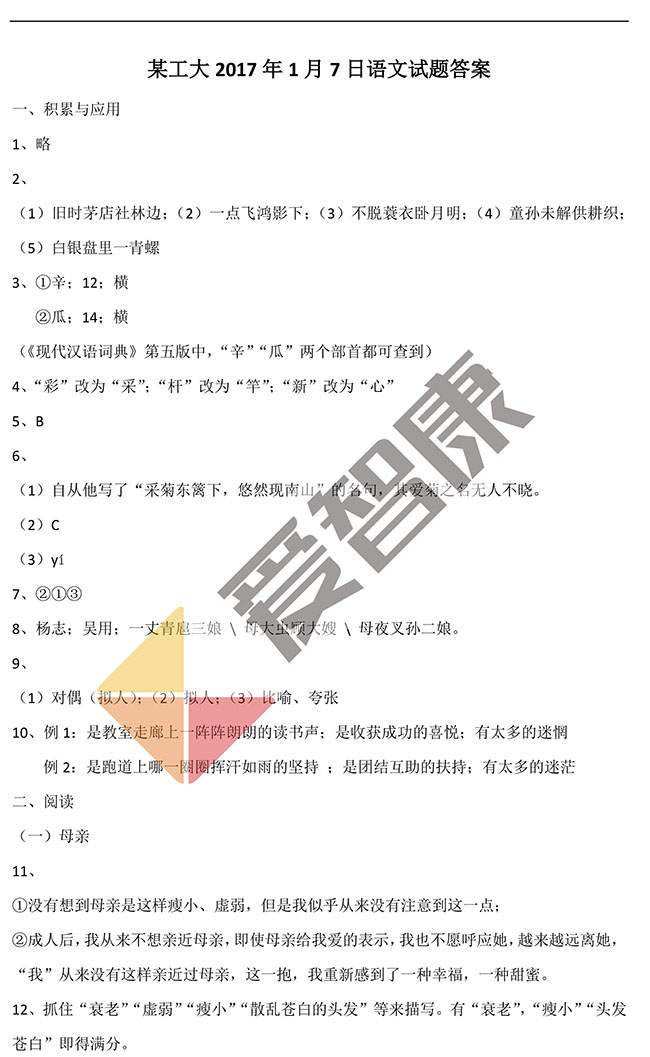 某工大附中1月7日D考语文试题及答案(5)