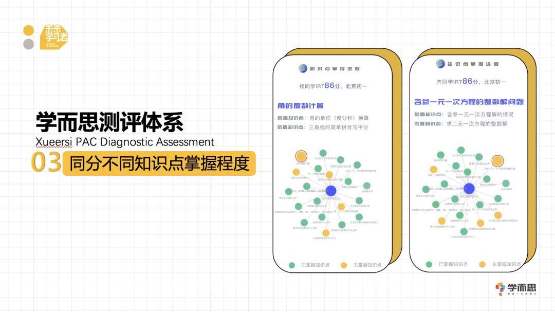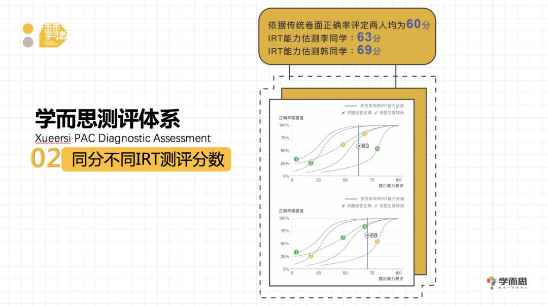 包蓓蓓指出,“学而思测评体系”工具能够将学员的作答策略可视化。“通过还原在每道题上所花的时间,区分开‘会而熟练’、‘会而不熟练’;区分开‘不会但死磕’、以及‘不会就放弃’。挖掘并洞悉传统考试和测评中看不见的数据,帮助爱智康的老师为学员科学定制考试策略,改善答题习惯。”