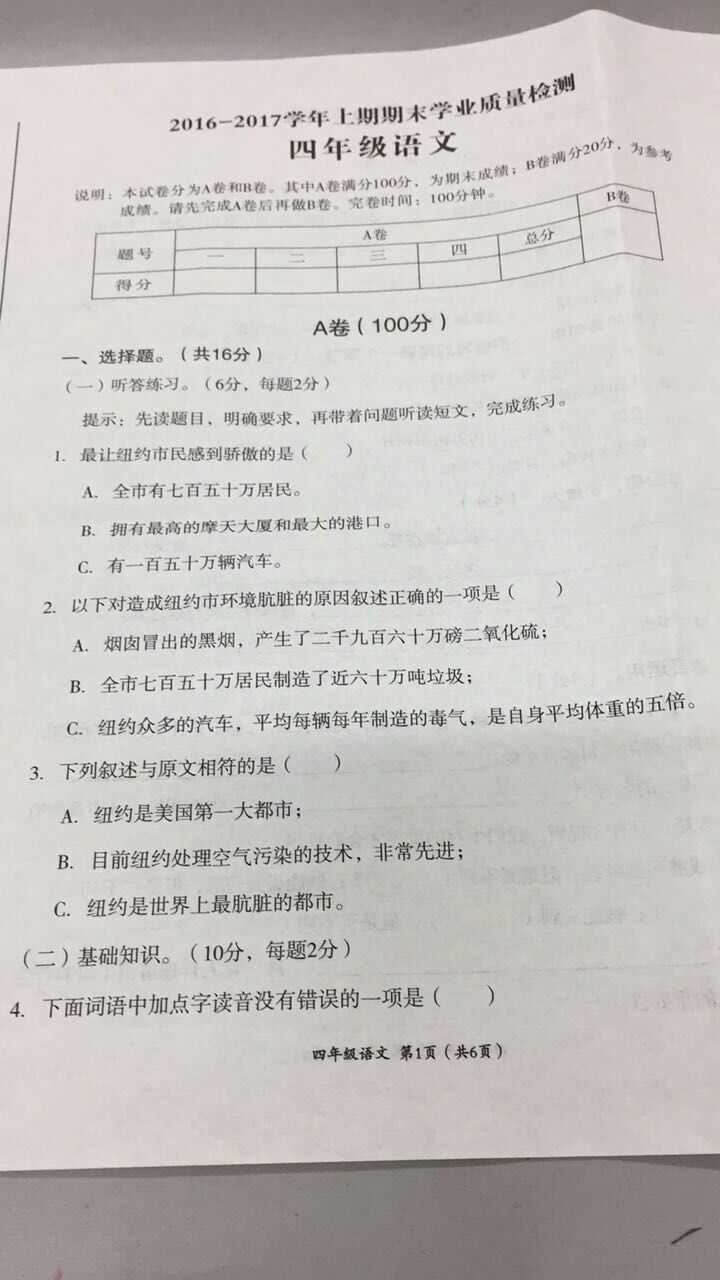 2016-2017学年成都高新区四年级语文期末试卷,伴随着严寒和越来越近的年味,小学期末考试即将来临,那么,今天小编就给大家整理了2016-2017学年成都高新区四年级语文期末试卷,供小学的家长参考。