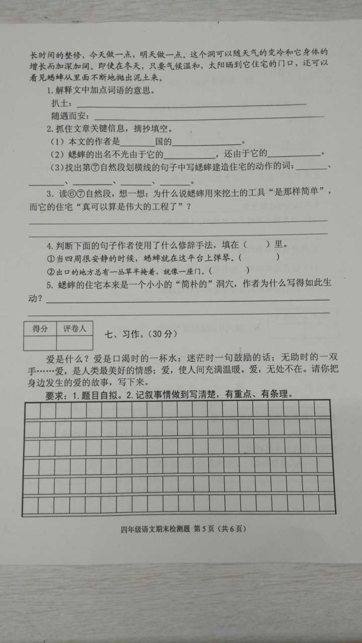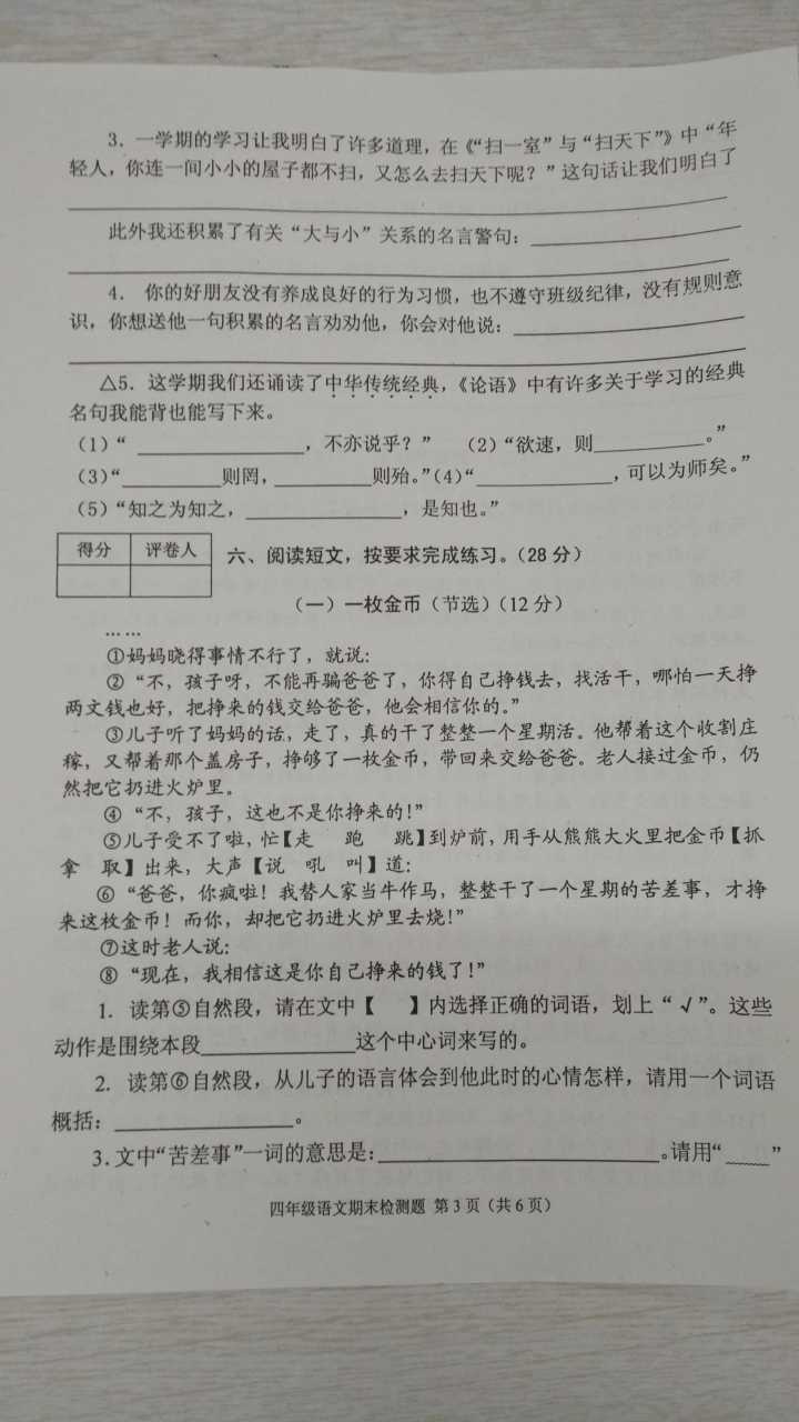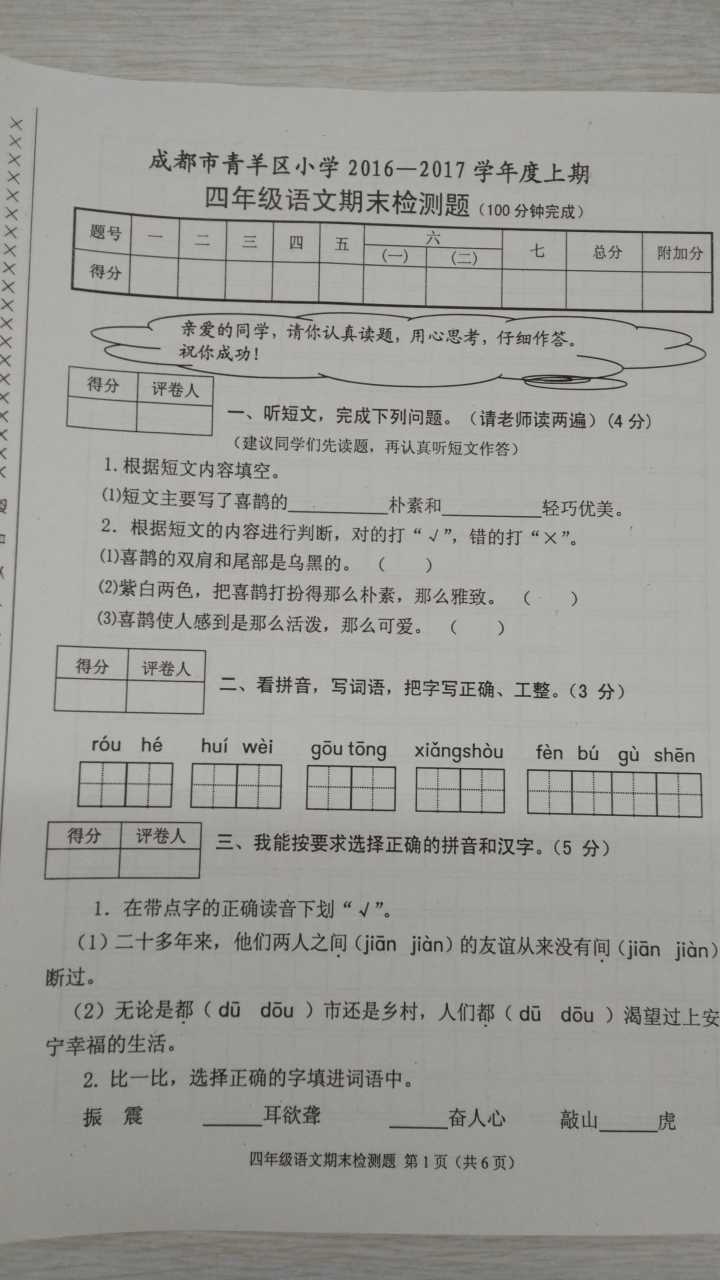 2016-2017学年成都青羊区四年级语文期末试卷暂时没有出来,会第一时间更新,所以大家要时时关注哈!