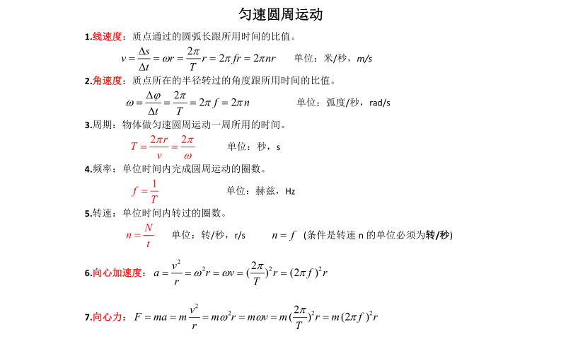 高一物理下重点知识点分析:匀速圆周运动