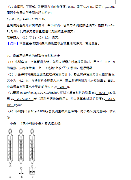 初二物理实验题91-95答案解(2)