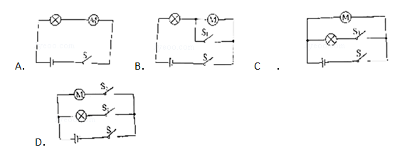 【分析】串联的各电路元件相互影响,不能独立工作;并联的各电路元件互不影响,能独立工作;根据题意确定两开关与电动机的连接方式,然后分析电路图答题。