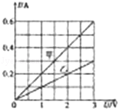 D、将甲和乙串联,电流相同,由图象可知,当电路中的电流为0。2A时,甲的电压为1V,乙的电压为2V,满足它们两端电压(总电压)为3V,所以由串联电路的电流特点可知,通过甲的电流为0。2A,故D错误。