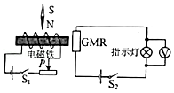 (2)闭合开关S1和S2,使滑片P向左滑动,电阻变小,电流变大,磁场的磁性增强,巨磁电阻的阻值减小,电路电流变大,所以指示灯的亮度会变亮,故C错误。