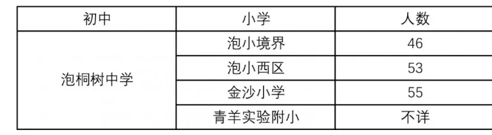 秋天根据18年的小摇号数据进行了整理,泡桐树中学的学生主要来源于以下4个学校。