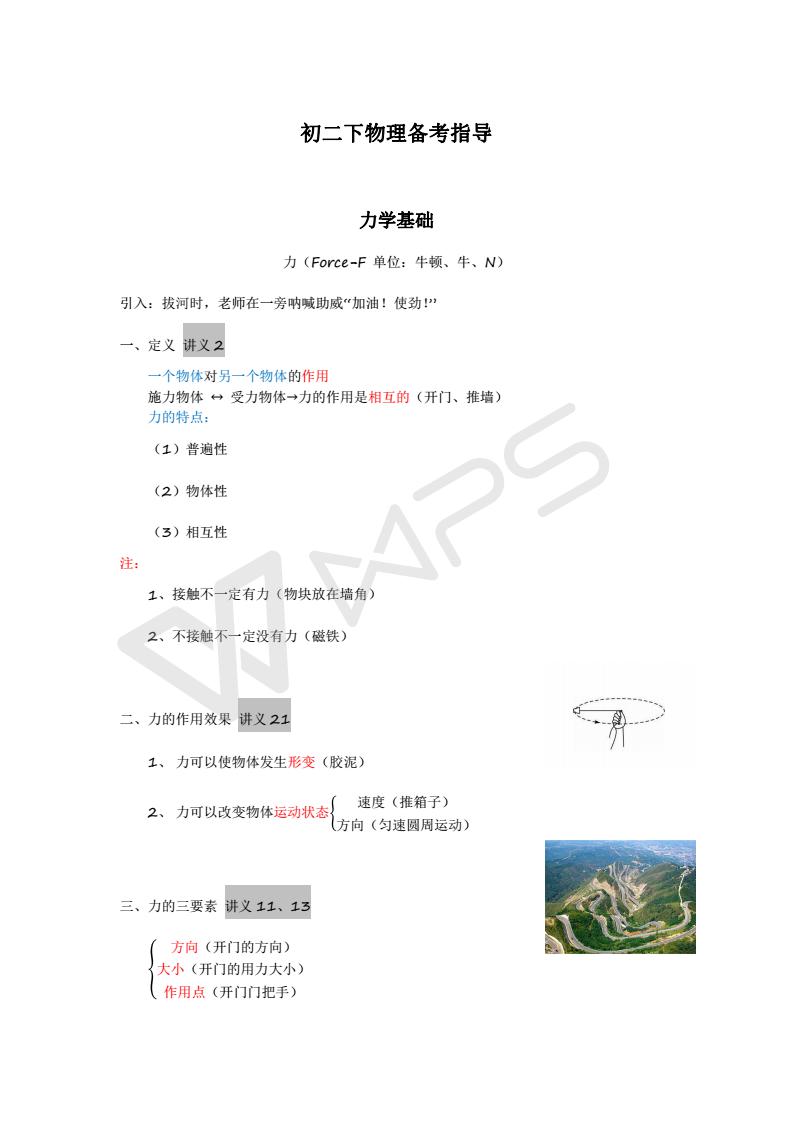 初二下物理备考指导:力学基础