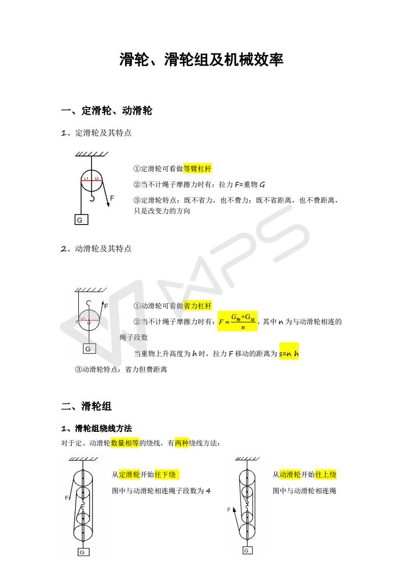 初二下物理备考指导:滑轮、滑轮组及机械效率