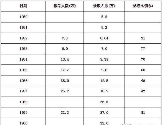 1952年-今高考报考人数录取人数、高考时间信息