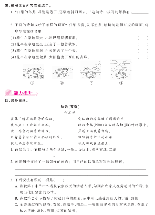 2020年统编版四年级上语文练习:《现代诗二首》(图片版)已经为大家准备好,希望大家再接再厉,勇往直前。欢迎拨打: