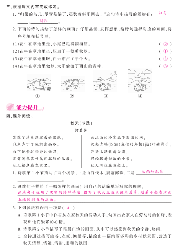 2020年统编版四年级上语文练习:《现代诗二首》(答案)已经为大家准备好,希望大家再接再厉,勇往直前。欢迎拨打: