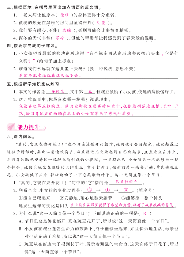 . 2020年统编四上语文练习:《一个豆荚里的五粒豆》(答案)(2)_成都学而思1对1