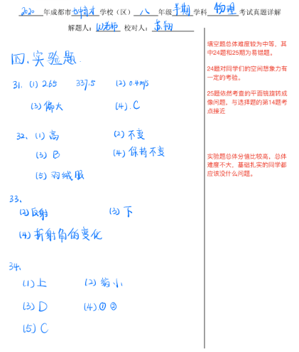 . 七中育才初二物理半期考试答案详解(2)_成都学而思1对1