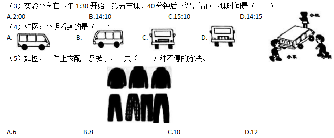 (4)小军6:30起床,小强6:40起床,小强起的早。 ( )