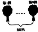 环卫工人在道路一旁种了9棵树,第1棵树和最后一棵树相距80米,平均两棵树之间相距多少米?