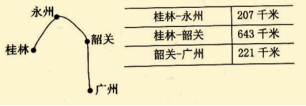(1)桂林到广州多少千米?(3分) (2)永州到广州多少千米?(3分)
